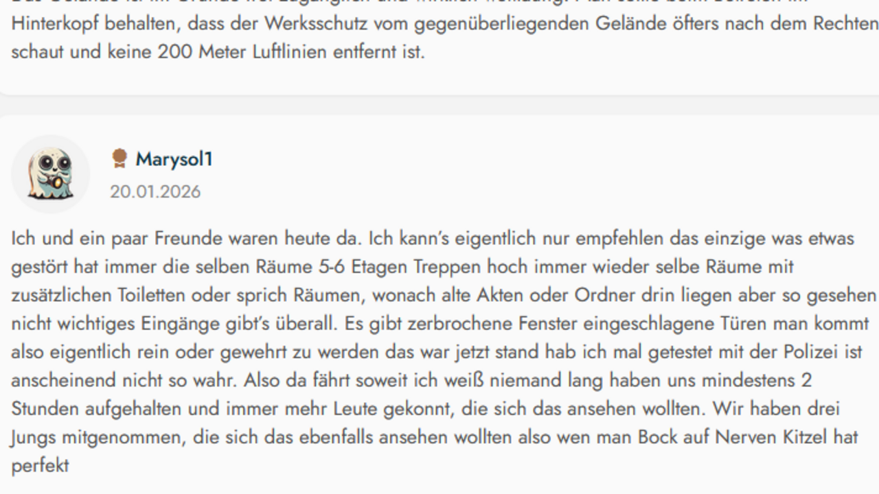 Das folgende Video des Youtubers ‘Frank Herbert’ zeigt zum einen das Ausmaß der Zerstörung im Inneren des Gebäudes. Zum anderen wird ersichtlich, dass noch Akten des Unternehmens Siemens Nixdorf mit teils sensiblen Daten im Gebäude liegen.