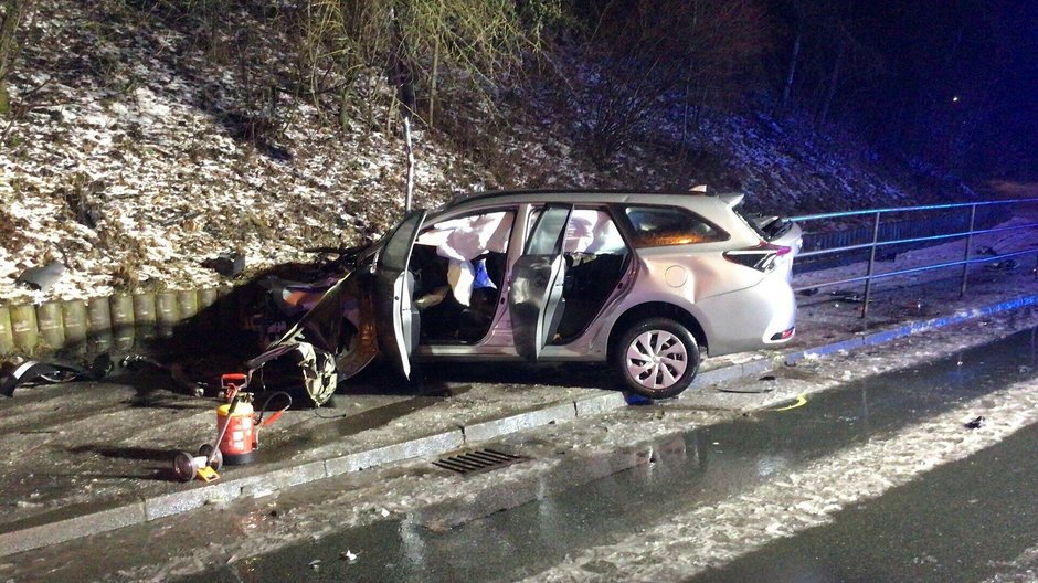 Der Toyota kam auf Schneematsch in einer leichten Linkskurve in Höhe der Eisenbahnbrücke von der Straße ab, rutschte über die Gegenfahrbahn und krachte in ein Metallgitter. Das bohrte sich stellenweise in den Wagen. Auf dem Ludwigsfelder Ring in Paderborn lagen etliche Trümmerteile. Die Polizeibeamten retteten die beiden schwer verletzten 19-Jährigen aus dem Wrack.
