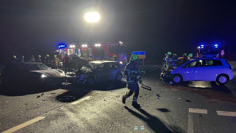 Rund 30 Einsatzkräfte sind am Abend (Do., 06.02., ca. 18 Uhr) zu einem Unfall in Paderborn an der Kreuzung des George-Marshall-Rings mit der B64 ausgerückt. Zwei Autos waren dort zusammengekracht – einer der Wagen kollidierte dann noch mit einem dritten Auto, das an der Kreuzung stand.