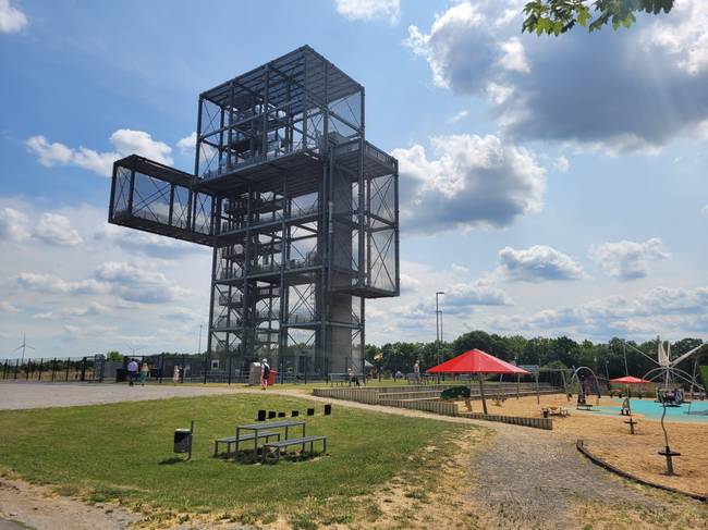 Der Indemann: Wo heute noch drei riesige Tagebaulöcher die Landschaft bestimmen, werden in einigen Jahrzehnten große Seen entstehen. Doch um im Rheinischen Revier etwas zu erleben, muss man nicht so lange warten. Das geht heute schon am Indemann. Im Grunde ist "er" ein Aussichtsturm, aber auch das Wahrzeichen des "Indelandes". So heißt die Region rund um den Tagebau Inden (in der Gemeinde Inden, am Fluss Inde). Und ein Besuch am Indemann lohnt sich durchaus für einen Tagesausflug mit der Familie.