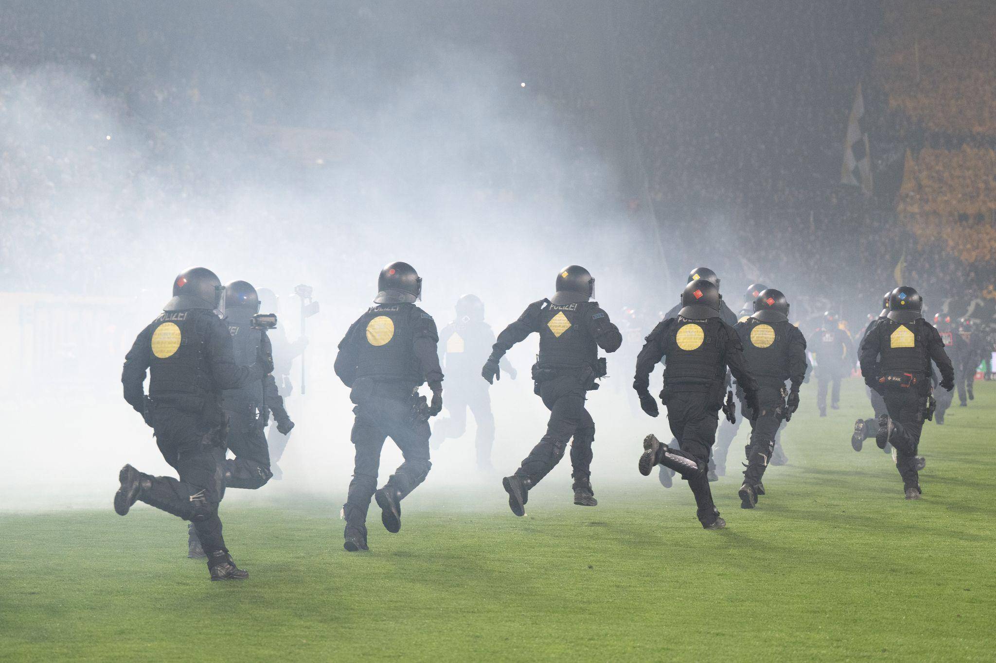 Schiedsrichter Sven Jablonski musste die Begegnung unterbrechen und schickte die Teams in die Kabine. Polizisten versuchten, die Dynamo-Anhänger zurück in ihren Block zu drängen. Dort wurde dann eine Hertha-Fahne abgebrannt. Angesichts diverser Delikte in der Vergangenheit müssen Dresden und die Hertha möglicherweise mit empfindlichen Strafen durch die Verbandsgerichtsbarkeit rechnen.