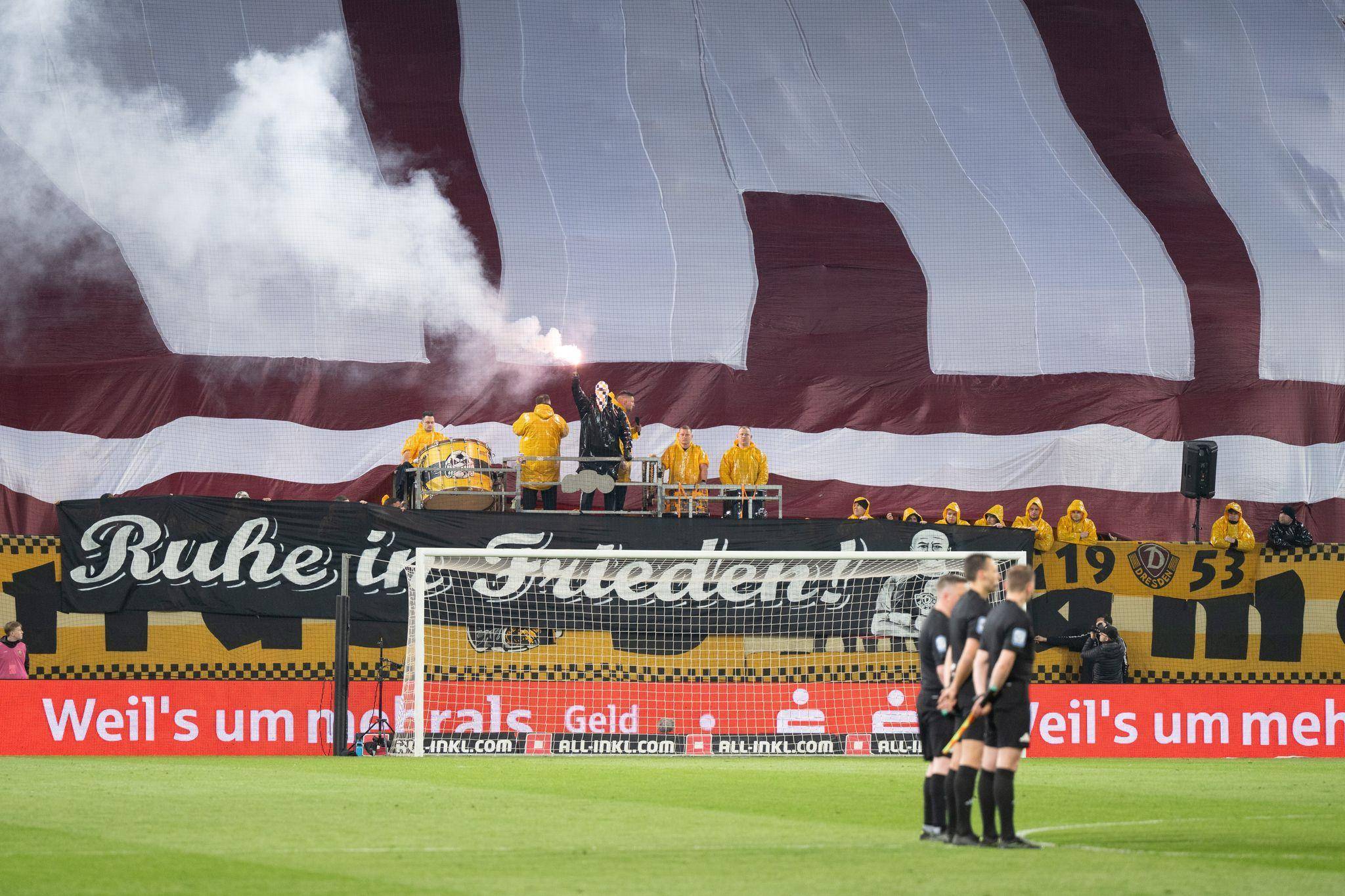 Die Dresdner Polizei hatte mitgeteilt, mehr als ein Dutzend Ermittlungsverfahren eingeleitet zu haben. Gegen die Fans werde wegen des Verdachts auf Landfriedensbruch, gefährliche Körperverletzung, Sachbeschädigung, Beleidigung sowie Ticketbetrug ermittelt.